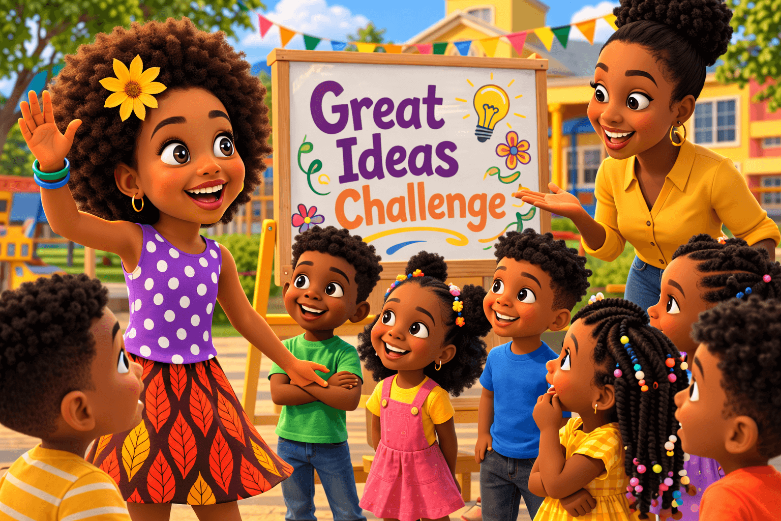 “Next week,” she said with a smile, “our school will have its first Great Ideas Challenge! Every class must build something that helps the community.”